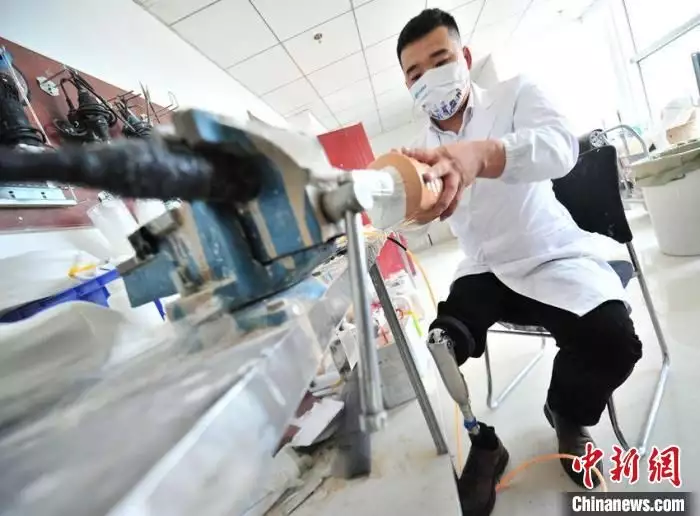 张立德在打磨假肢的细节。 高龙安 摄