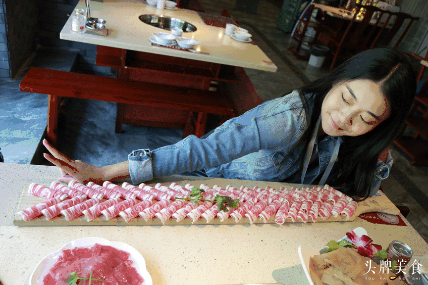 说是大板羊肉,其实是因为整板羊肉要有一米多长!份量太足了好吗!牌长用手比了比,唉,小胳膊太短,还够不到最边![]()