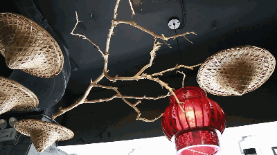 整间店的天花板都用草帽装饰,窗明几净,包厢也用各个地名来命名,整洁有序,墙上别具一格的用京剧脸谱装饰。整间店都显得红彤彤的,看起来就很有食欲~