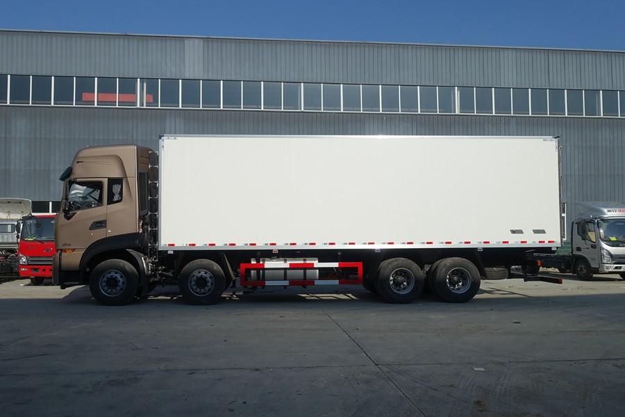 底盘配置:高顶大排半驾驶室、电动玻璃升降、电动后视镜、单DIN北斗兼容车载系统,伊顿CA12TAX210M(全铝壳体、福伊特液力缓速器)车桥Ф435冲焊桥、速比3.727,12R22.5型18层级无内胎(土楼轮辋、前轮及备胎:花纹RR100、后桥:花纹RR99)(国产ABS、2孔V杆、1878轮距)、自动空调、前下防护装置、600L+400L油箱、金属保险杠、高效单空滤、驾驶室四点空气悬置、电动液压举升装置、悬架3/3/10、车身左侧带“质惠版 绿通”字样、机箱体现10/10万公里长换油周期、TRW转向机、150Ah蓄电池、前后楔式制动器、远程销贷功能、右转弯音响提示。