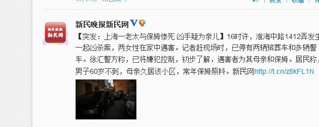 标签:上海一老太与保姆死于家中凶手疑为老太亲儿