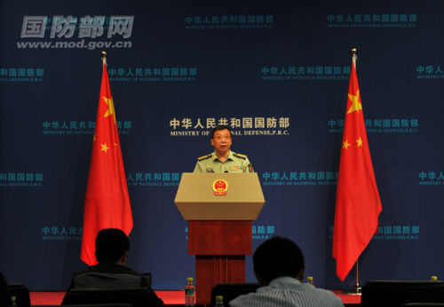 国防部新闻事务局局长、国防部新闻发言人耿雁生大校答记者问。(高鹏摄)