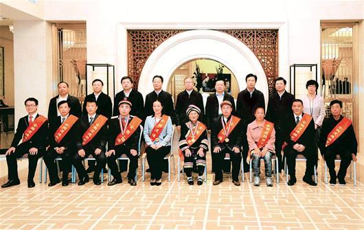 原标题:图文:道德模范坐前排 书记省长站后排