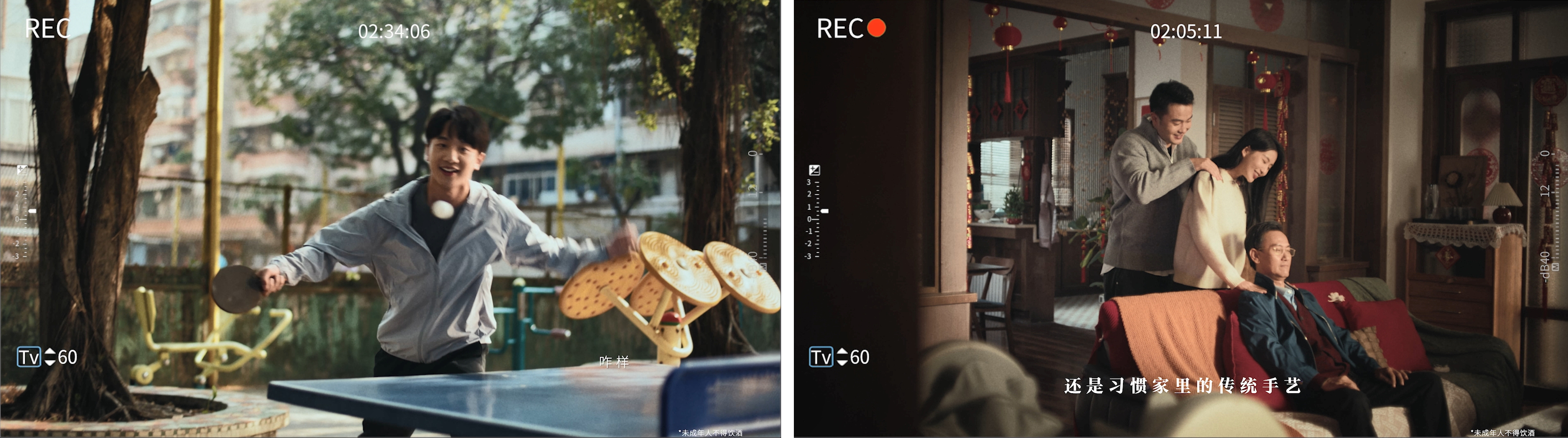 短片以拟人化的“劲酒本酒”作为导演,通过其视角捕捉普通人春节的生活片段:被家人反复惦记的饮食偏好、默契延续的运动习惯、以及团圆时刻彼此自然流露的关心。养生在其中不再是刻意为之的选择,而是悄然融入亲情中的生活惯性,成为一种自然而然的好习惯。